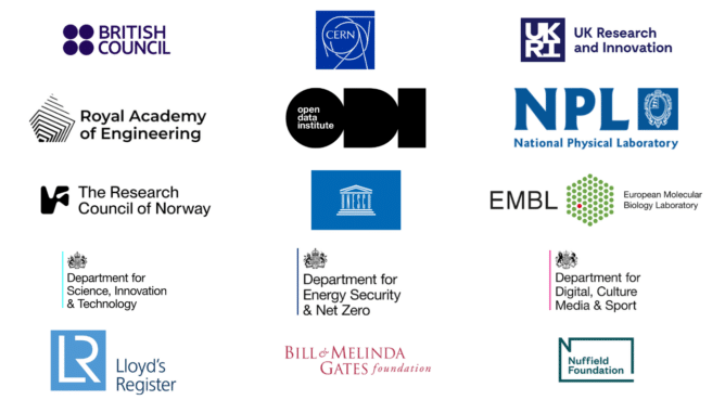 - Institutes and research infrastructures (e.g. Open Data Institute, CERN, European Molecular Biology Laboratory, National Physical Laboratory);